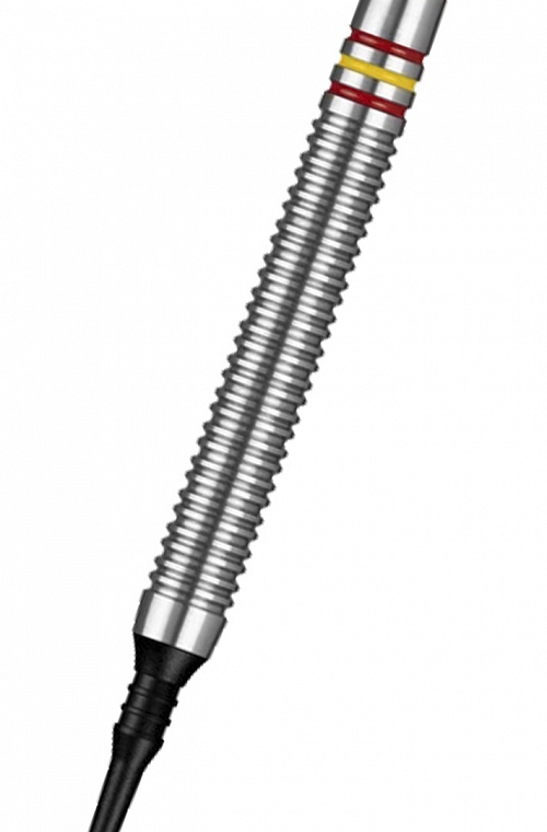 Designa Patriot XDarts Spain soft tip darts. 90% tunsgten barrel with a distinctive twin ringed grip. This assembled darts have a weight of 20 grams (18 grams only barrel). Comes with Nylon shafts and Designa flights.