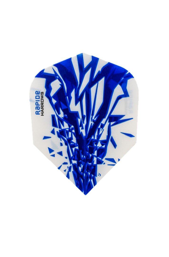 Harrows Rapide Flights. Standard geometry with blue color. 100 micron flights. A combination of translucent membranes and cutting edge print techniques.