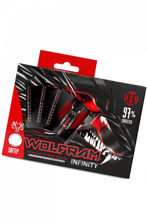 Harrows Wolfram Infinity soft tips Darts. 97% tungsteng barrels and weight of 18 grams (16,5 grams only barrel). Harrows darts with Supergrip Fusion shafts and Prime flights. Slim box included.