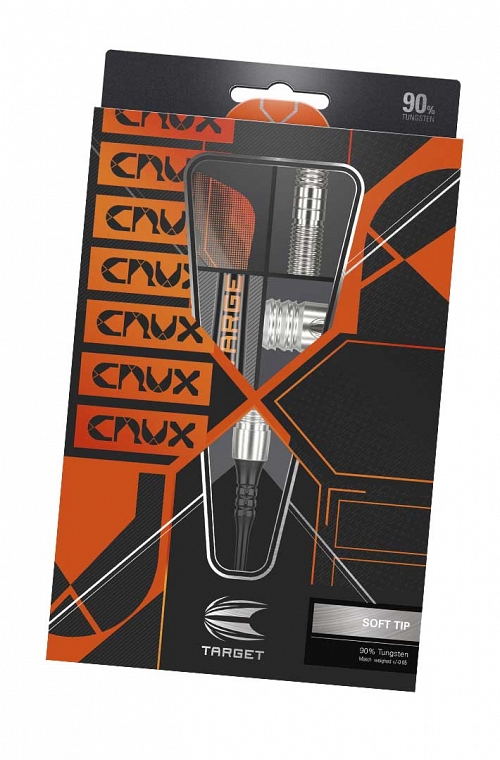 Target Crux 10 soft tip darts. 90% tungsten barrels, the main grip profile on Crux is radial grooves which are machined in a variety of ways throughout the different barrel shapes, providing an assortment of grips and choices for all different throwers. The barrels, left in a natural Tungsten finish.