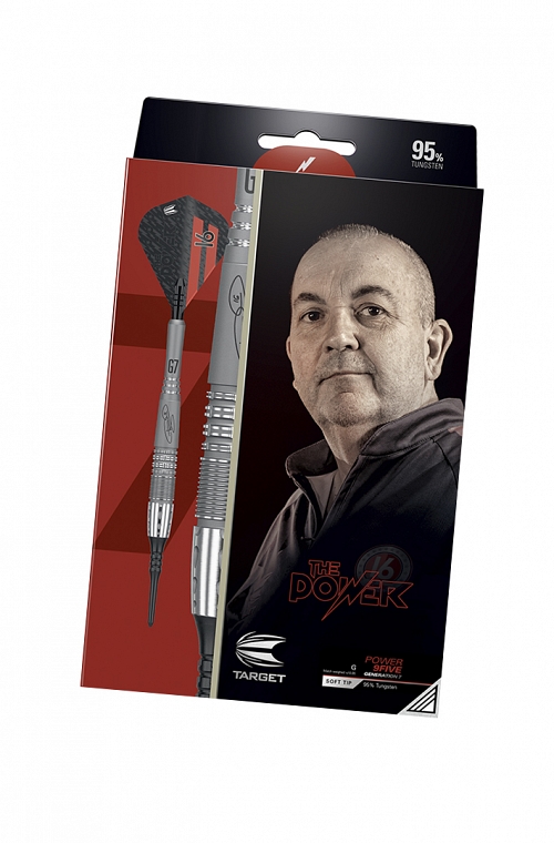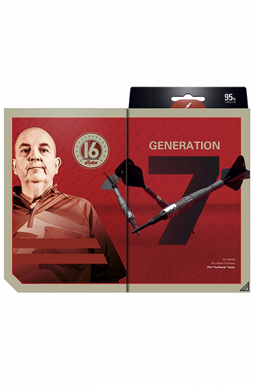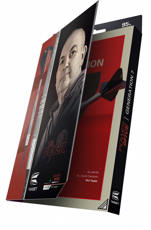 Target Power 9Five G7 soft tip Darts. The Phil Taylor Power 9-Five Generation 7 shares dimensions from the Generation 4 design, though now features additional CNC milling on the barrel nose. Complimented with a new titanium shaft with heighten grooves, the barrel is finished with a silver titanium nitride coating and hand sandblasted at the rear and inside the radial grooving to create a distinct matte texture for added grip.