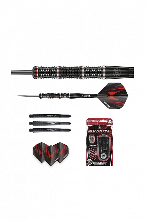 Winmau Mervyn King S.E. steel tip darts. Truly unmistakable Special Editions, Mervyn’s signature scallop meets stunning mill-grip design. Delivering outstanding feel completed in Onyx Coating and a Vetalic finish.
