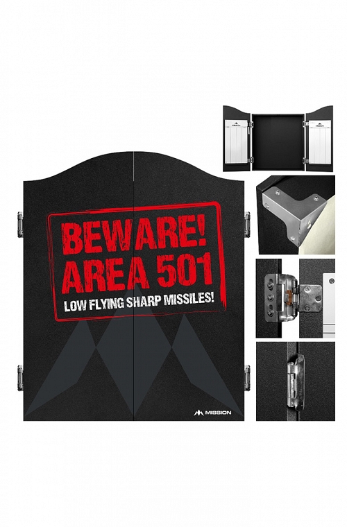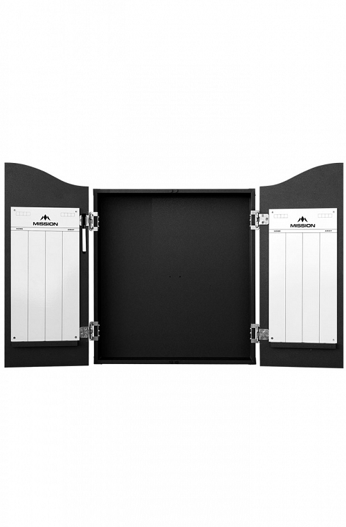 El armario Mission Dartboard es altamente duradero, con bisagras premium y esquinas reforzadas para mayor resistencia y estabilidad. Dos marcadores fáciles de limpiar están integrados en las puertas, junto con soportes para 2 juegos de dardos. Cada armario se suministra con un rotulador y kit de fijación.