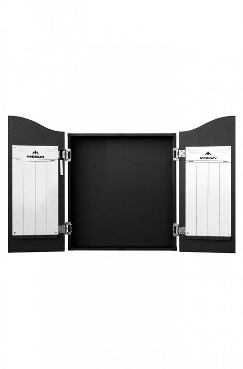 El armario Mission Dartboard es altamente duradero, con bisagras premium y esquinas reforzadas para mayor resistencia y estabilidad. Dos marcadores fáciles de limpiar están integrados en las puertas, junto con soportes para 2 juegos de dardos. Cada armario se suministra con un rotulador y kit de fijación.