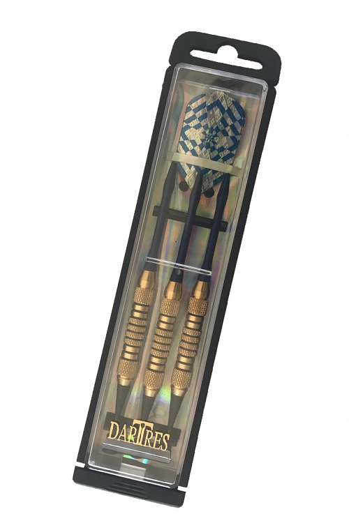 Dardos Dartres Neptuno de punta de plástico. Dardos de latón de 18 gramos de peso completo (15,2 gramos solo barril). Viene con cañas de aluminio anodizado y plumas slim.