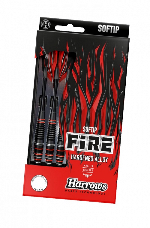 Dardos Harrows Fire High Grade Alloy de punta de plástico. Fabricado con aleación endurecida. El barril cónico tiene un peso medio con una mezcla de cortes de tiburón y anillos, lo que le da una apariencia llamativa y una caída óptima. Inspirándose en Fire Inferno, estos dardos tienen un revestimiento negro duradero con anillos rojos y plateados vibrantes.