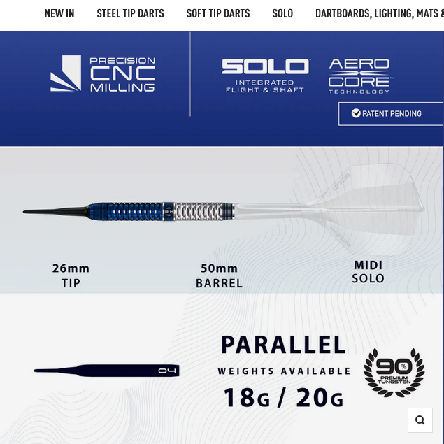 Dardos Harrows GEO Parallel 90% de tungsteno . Pack que incluye el juego de dardos Geo Parallel , Aletas Harrows Solo, puntas de plástico de recambio, punta de acero y dos fundas Harrows.
