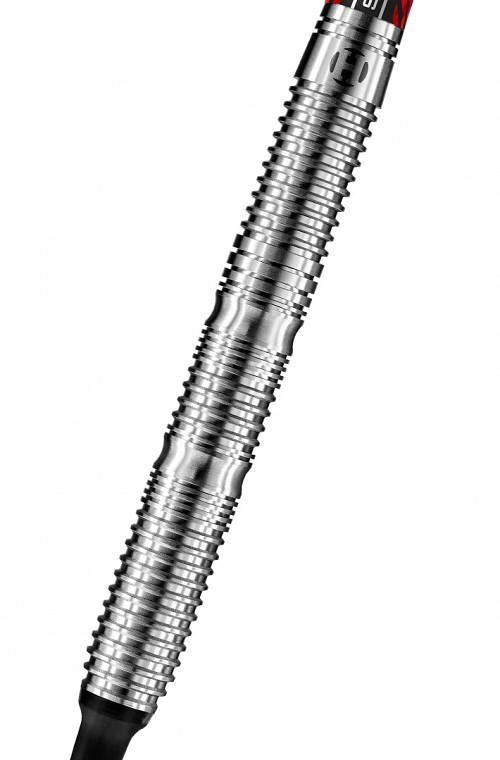 Dardos Harrows Rival de punta de plástico. Fabricado con 90% tungsteno. Con un barril recto de peso medio con tres zonas de agarre prominentes, divididas por dos vieiras pronunciadas para una colocación consistente de los dedos.