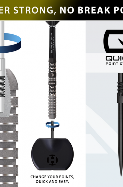 ∙ 3 x Dardoss∙ 3 x Aletas Chizzy Series 4∙ 3 x Cañas Supergrip Carbon∙ 3 x Puntas 26mm Black Quick Points∙ 1 x Herramienta Quick Point