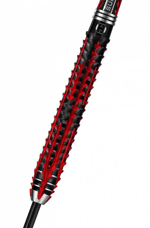 Dardos Harrows Fire Inferno de punta de acero. Fire Inferno ha sido fabricado meticulosamente utilizando el mejor material y las técnicas más avanzadas disponibles. Efecto fuego, fresado bi-latelal combinado con cortes de anillo inverso para lograr su secuencia de agarre única. Acabado con nitruro de titanio negro resistente y revestimiento rojo metálico vivo.