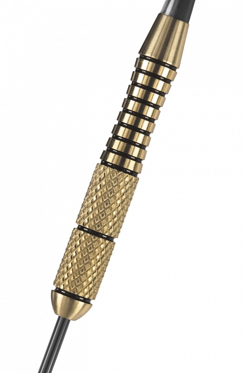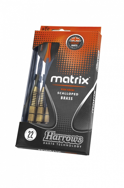Dardos Harrows de punta de acero de la línea Matrix. Barriles estriados para un agarre optimo fabricados en latón-níquel de gran calidad. Con una aerodinámica casi perfecta gracias a la combinación de las cañas speedline y plumas retina.