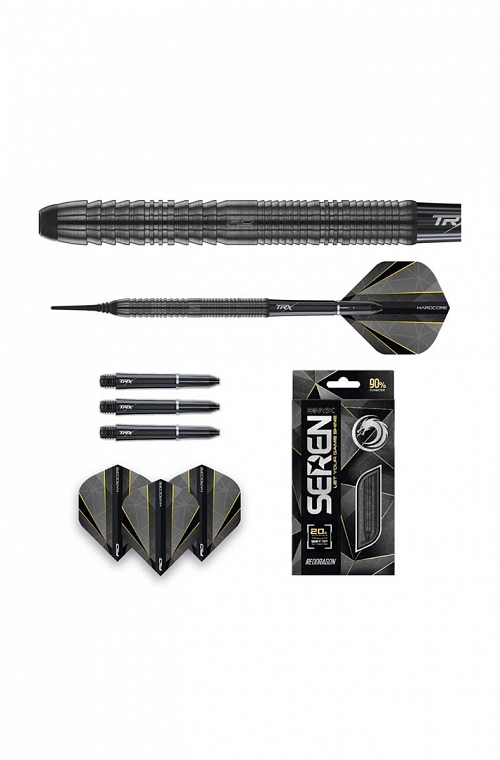 Los dardos Red Dragon Seren Onyx 01. Con un elegante acabado en Shadow Black, el Seren Onyx está diseñado para liberar tu lado oscuro. Apunta a las estrellas con una experiencia de lanzamiento inmersiva que ofrece un control total del cañón y una trayectoria suave.