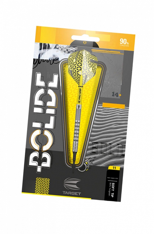 Dardos Target de punta de plástico Bolide 12. Los bolide estan intrincadamente construidos con cortes ranurados radiales precisos y un revestimiento pulido a mano le da al dardo mayor agarre y sensación.