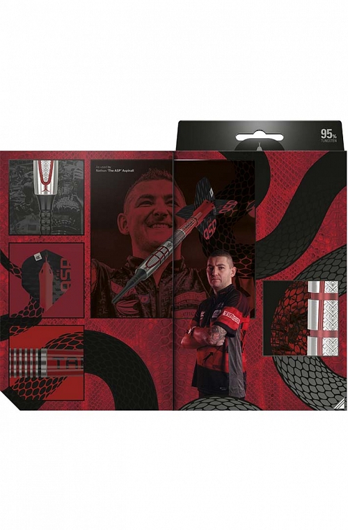 Dardos Target de punta de plástico Nathan Aspinall G2. Barriles de 95% de tunsgteno, con múltiples perfiles de agarre en todo el barril que ofrecen una sensación bien equilibrada para el dardo. La parte delantera del barril presenta secciones transversales molidas por CNC separadas por acabados de ranura natural y radial, con un guiño a "the ASP" en la nariz del barril. El agarre luego se mueve a un ritmo radial clásico en la parte trasera que ofrece una sensación constante. El recubrimiento de rendimiento de PVD rojo se superpone dentro de los surcos de los dardos que agregan agarre y textura