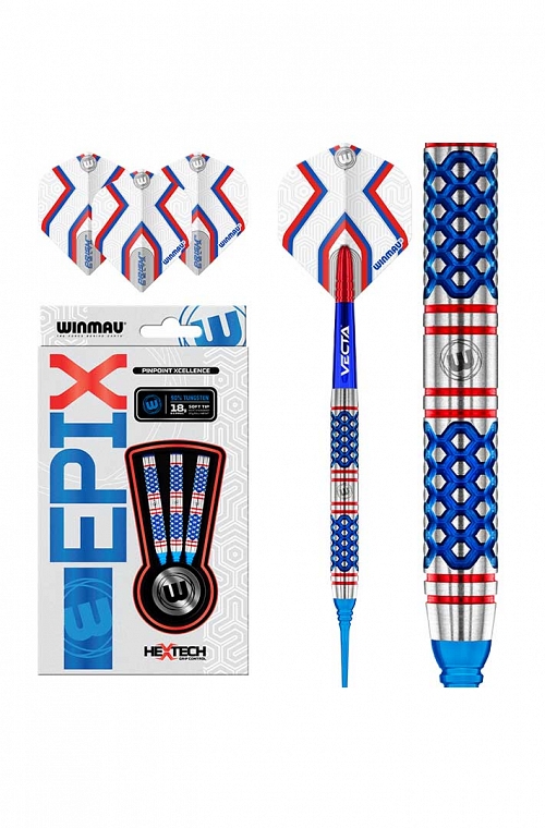 Máximo control y confianza con el nuevo agarre multidireccional y multieje de Hex-Tech. Completo con impresionantes detalles Vetalic burdeos y azul de serie, para dardos que lucen tan bien como se sienten. El rendimiento, el diseño innovador y la precisión milimétrica se combinan para crear dardos que llevan el deporte a un nivel completamente nuevo. Redefina su juego.