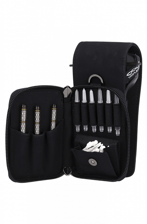 Estuche Dynasty PLUS+ Case en color azul. Tamaño compacto con capacidad para un juego de dardos montados protegidos por una Krystal One. Bolsillos para accesorios.