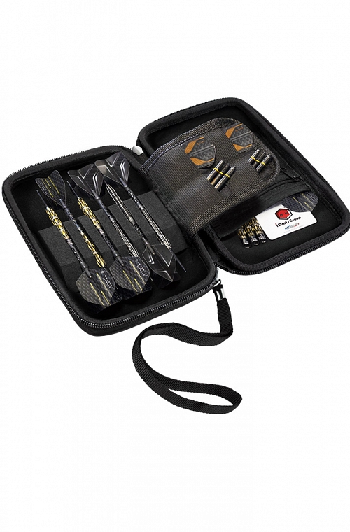 Estuche Harrows Carbon ST Pro 6. Color azul. Una carcasa exterior rígida de EVA protege todo el equipo dentro del estuche y un compartimento de almacenamiento acolchado con cremallera asegura que no se dañen los accesorios. Diseñado para contener dos juegos de dardos y con bolsillo para accesorios.