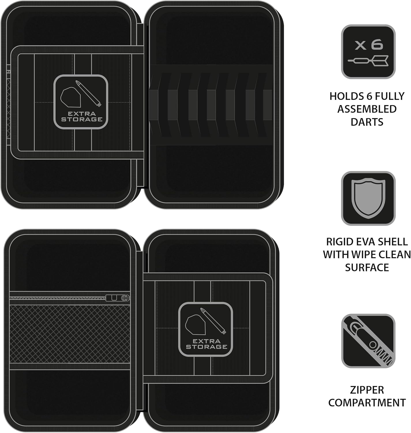 Estuche para dardos Harrows Ryan Searle 6. Capacidad para dos juegos de dardos completamente montado. Fabricada en EVA. Funda rigida