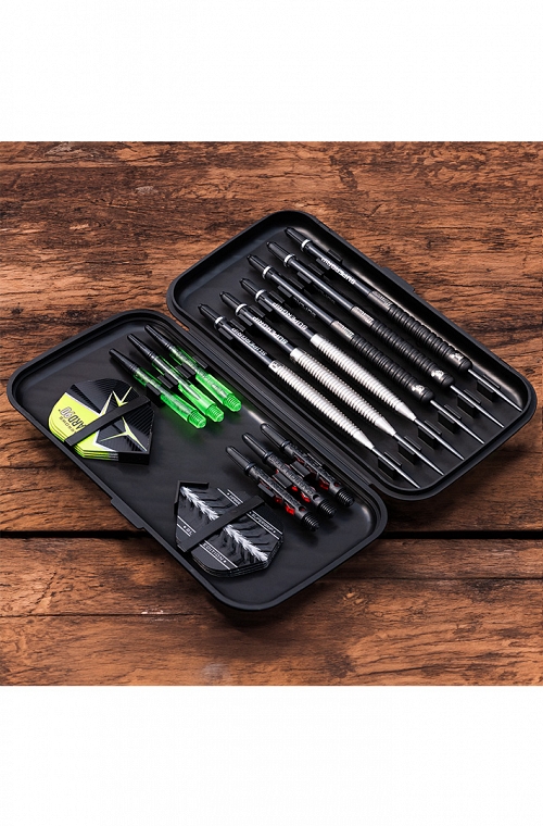 El estuche de dardos definitivo para proteger tus dardos: cabe en la palma de la mano y pesa solo 40 g. Este ingenioso diseño de Harrows R&D lo convierte en el estuche para 6 dardos más pequeño y liviano del mundo. Es la mejor opción para llevarlo en el bolsillo, con dardos parcialmente ensamblados y múltiples accesorios. Simplemente abre el cierre de seguridad, ajusta las plumas al barril y la caña y estarás listo para jugar.