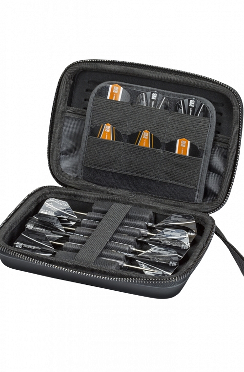 Funda Target Takoma XL en color negro. Dardera de gran resistencia fabricado en material EVA. Capacidad para dos juegos de dardos y bolsillos interiores para accesorios. Compartimento con cremallera.