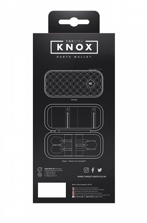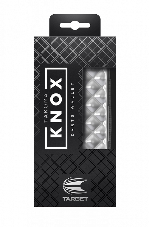 Funda Target Takoma Knox. Color plata. Fabricado con material ABS fuerte, para mantener la rigidez y protejer tus dardos y accesorios. Con una capa de terciopelo junto con goma elástica para guardar tus dardos montados.