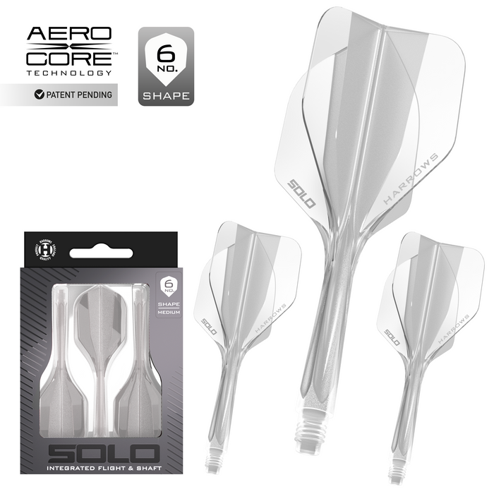 Plumas Harrows Solo Nuevas aletas de Harrows darts con geometría número 6 en color Transparente. y talla mediana Diseñado para jugadores que exigen consistencia, Solo combina una aerodinámica avanzada con una durabilidad excepcional Mediante un moldeado de precisión una sola unidad ligera y resistente La estructura fija de 90 grados garantiza un equilibrio y un rendimiento inquebrantables en cada lanzamiento.
