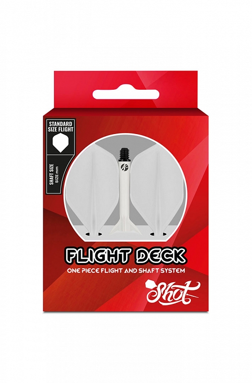 Plumas Shot Deck. Geometría standard y color blanco. Fabricado con materiales duraderos y de alta calidad, la Shot Deck esta diseñada con precisión y construida para durar, estas plumas están diseñadas para brindar estabilidad y control inigualables, lo que lo ayuda a perfeccionar su lanzamiento con cada dardo.