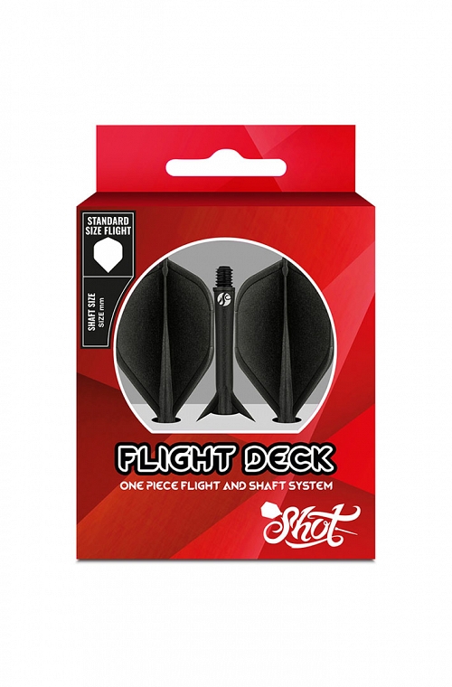 Plumas Shot Deck. Geometría standard y color negro. Fabricado con materiales duraderos y de alta calidad, la Shot Deck esta diseñada con precisión y construida para durar, estas plumas están diseñadas para brindar estabilidad y control inigualables, lo que lo ayuda a perfeccionar su lanzamiento con cada dardo.