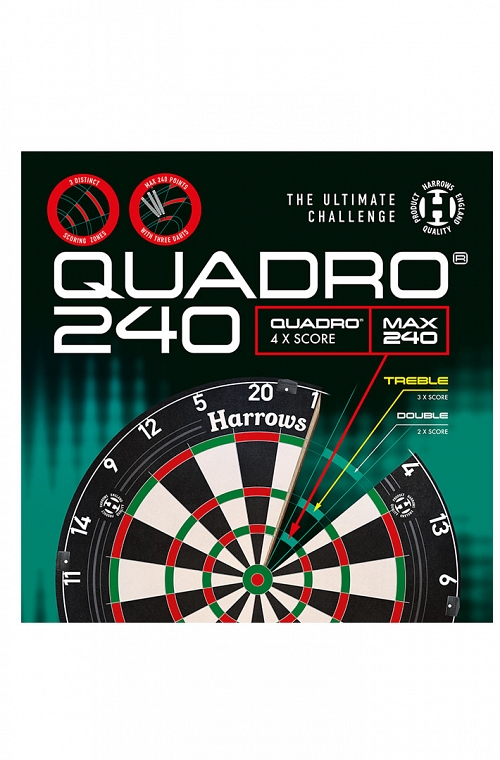 Alvo Harrows Quadro 240. Um verdadeiro clássico cult de dardos retornou; o alvo de dardos Quadro 240 está de volta. Disponível pela última vez em meados da década de 1990, fãs de dardos ao redor do mundo clamam por um retorno deste alvo icônico por mais de 30 anos.