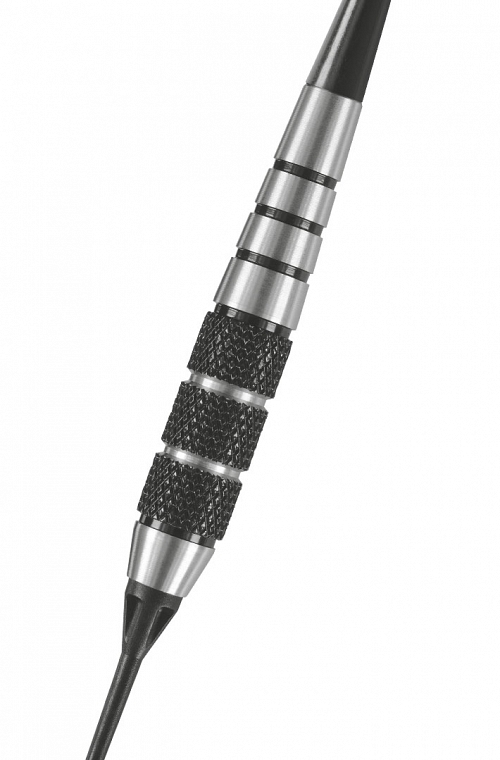 Dardos Harrows Black Jack de ponteira plástica. Cilindros de aço inoxidável e 18 gramas (16 gramas só cilindros). Dardos Harrows formados por hastes Speedline e voadores Supergrip 1701. Inclui caixa slim.