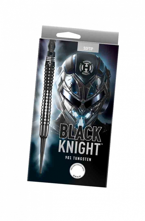 Dardos Harrows Black Knight de ponteira plastica. Um nariz cônico combinado com pontos indicadores de dedo duplo e fresagem linear criam um dardo exclusivo, ideal para aderência e liberação consistentes. Revestimento de nitreto de titânio preto resistente, recortado para deixar seções de prata impressionantes.