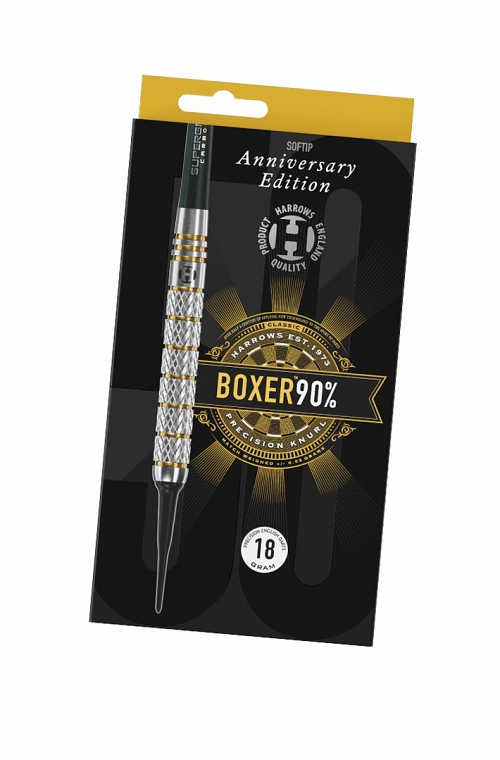 Dardos Harrows Boxer Parallel de ponteira plastica. Lançados em 1994, os dardos Boxer 90% são um dos mais icônicos já lançados pela Harrows. Os dardos Boxer combinam serrilhados de precisão com anéis de corte limpo para dar ao jogador uma aderência única e consistente. Revestido com nitreto de titânio dourado resistente.
