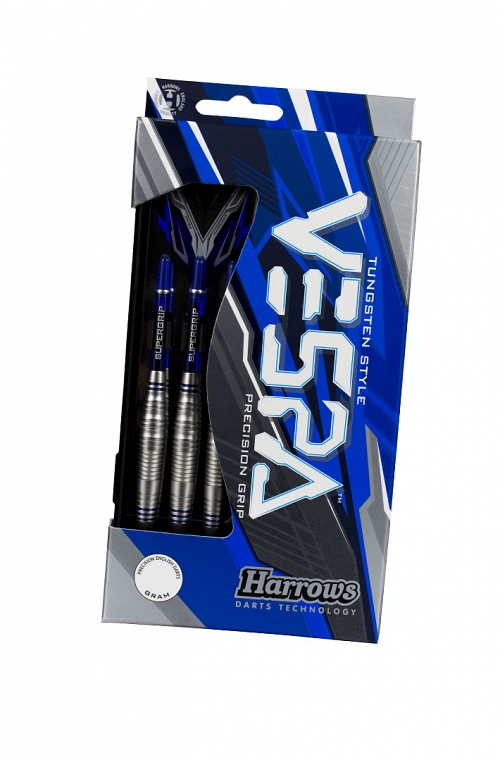 Dardos Harrows Vespa de ponteira plástica. Cilindros de bronze e 16 gramas (14,5 gramas só cilindros). Dardos Harrows formados por hastes Supergrip e voadores Prime. Inclui caixa slim.