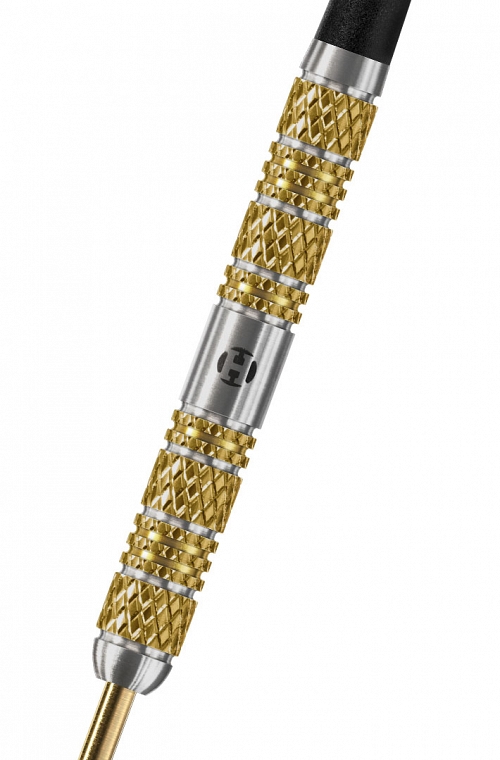 Dardos Harrows Atlantis de ponteira de aço. Os dardos Atlantis foram os primeiros dardos 95% de tungstênio já lançados pela Harrows. Esses dardos apresentam um padrão serrilhado pesado em segmentos ao longo do comprimento do cano paralelo para fornecer uma pegada firme e consistente. Revestido com nitreto de titânio dourado resistente.