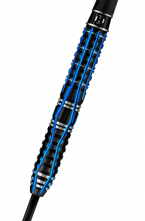 Dardos Harrows ICE Recut de ponteira de aço. Fabricado com 90% tungstênio. Fresagem de precisão com efeito de gelo, combinada com uma variedade de cortes em anel e acabamento com nitreto de titânio preto resistente e um revestimento metálico azul impressionante.
