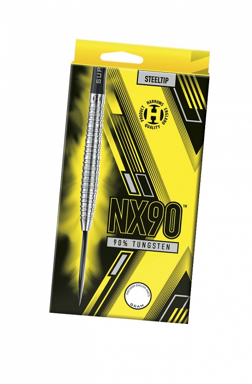 Dardos Harrows NX90 de ponteira de aço com perfil tapered. Uma combinação de cortes anelados, micro e recortados dá a este dardo uma sensação única, oferecendo a todos os jogadores uma sequência de pegada adequada ao seu lançamento.