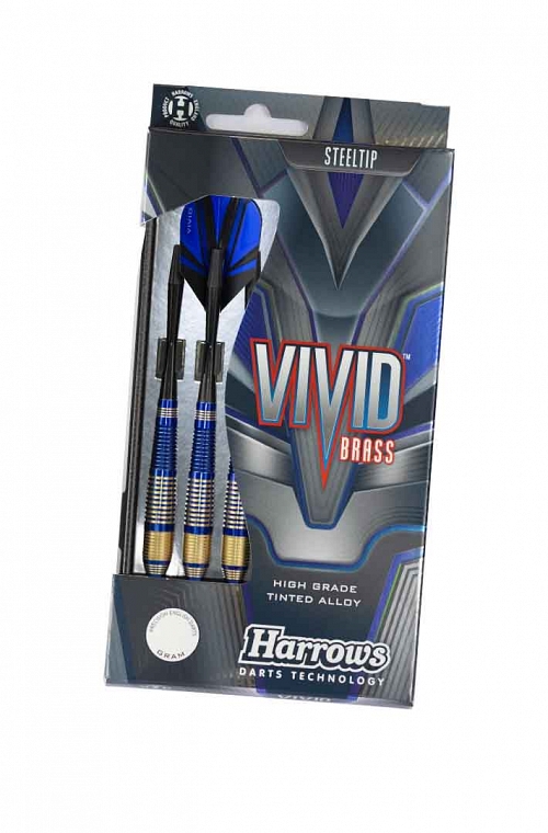 Dardos Harrows Vivid de ponteira de aço em cor azul. Cilindros de bronze e 21 gramas de peso. Dardos Harrows formados por hastes Speedline e voadores Vivid. Inclui caixa slim.