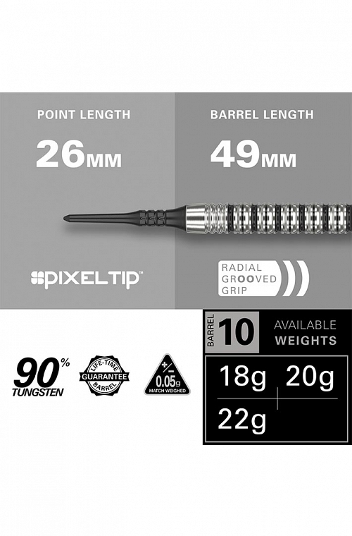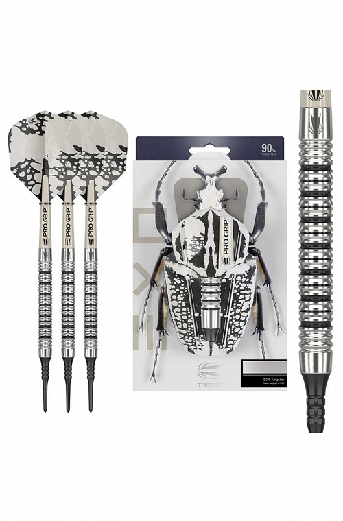 Os dardos EXO com ponteira plastica de 90% tungstênio apresentam um cilindro com empunhadura simples, porém elegante, com ranhuras radiais. Escolha entre dois canos retos tradicionais nos dardos EXO. Cada um com design intrincado apresenta um acabamento natural em tungstênio, integrando perfeitamente ranhuras radiais e uma empunhadura anelar contínua.