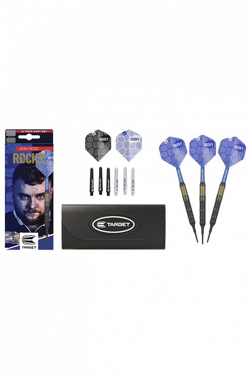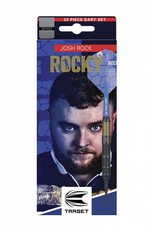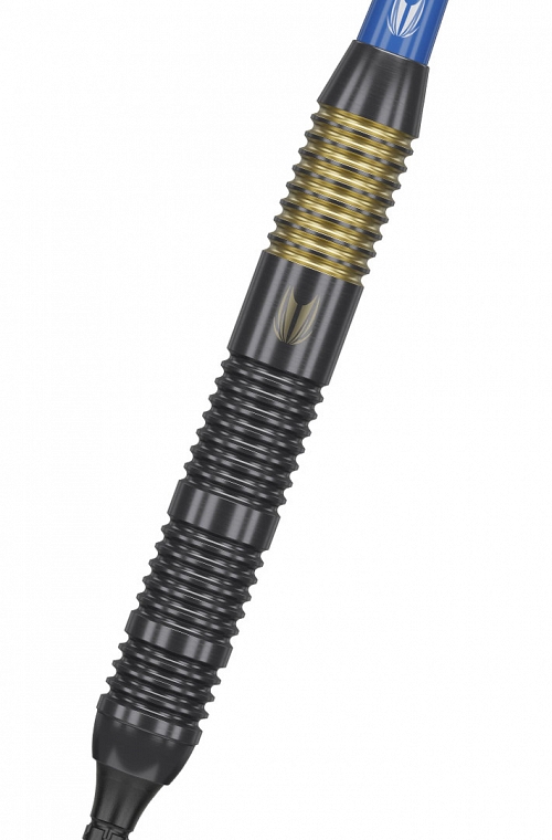 Dardos Target josh Rock Brass. Apresentam um impressionante cano reto com revestimento PVD preto de alto desempenho, aprimorado com ranhuras radiais usinadas para melhor aderência e controle do dardo, além de manchas douradas contrastantes na parte traseira.