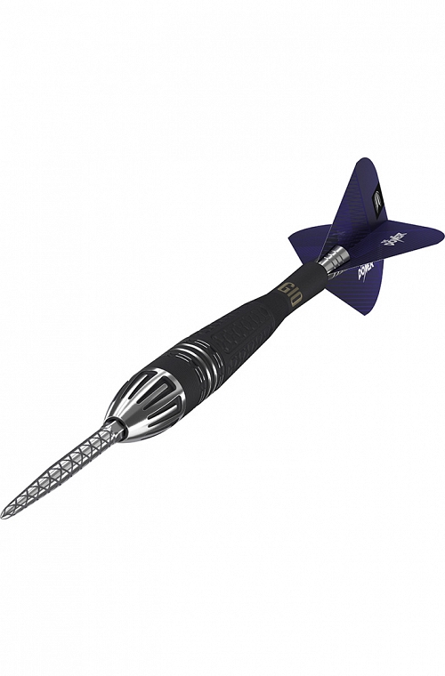 Dardos de ponta de aço Target Power 9Five G10 SP. Com novedoso sistema Swiss Point. Cilindros de 95% de tungstênio, com um alto nível de moagem de CNC com detalhes extremos. O dardo possui 3 áreas de alcance, a frente é uma garra de moagem CNC cromada com embutido preto com revestimento de PVD que se move para uma combinação de anéis moídos da máquina e ranhuras de nano com detalhes sutis. Por fim, na parte traseira há um design exclusivo que apresenta uma "colméia" como a aderência criada usando máquinas de moagem de alta precisão.