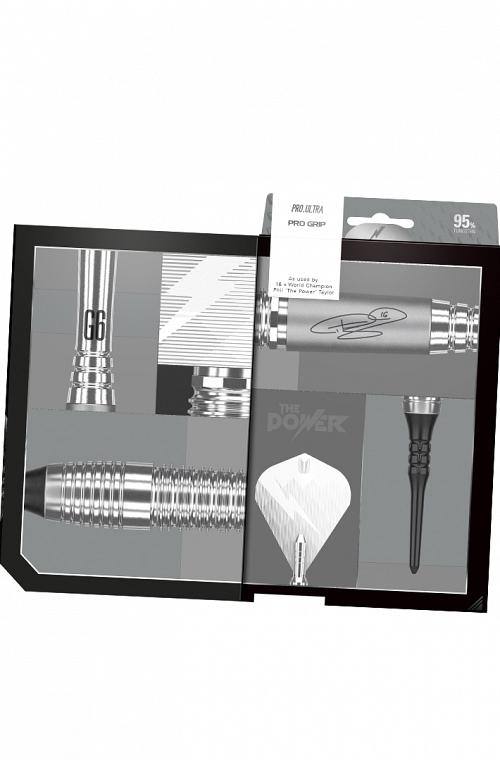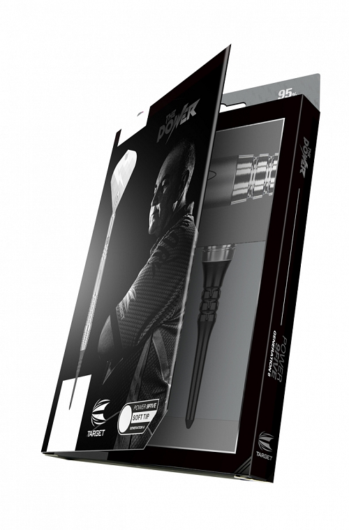 Dardos Target Power 9Five generação 6. Cada barril apresenta jateamento manual somente na seção traseira do barril, usando partículas extremamente finas para criar uma textura fosca distinta. O barril em si é um afastamento das gerações anteriores de Phil com uma forma diferente e tem um acabamento natural, dando a ele um design elegante e moderno.