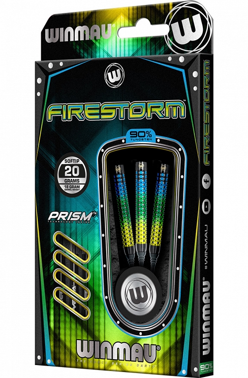 Dardos de ponta de plástico Winmau com desenho Firestorm. Cilindros de 18 gramas (dardo de 20 gramas completo) com 90% de tungstênio. Um desnho visual radical completado com a mais recente tecnologia de aperto de moinho em todo o comprimento do dardo. Entregando os dardos de aparência mais explosiva do mundo com desempenho à altura.