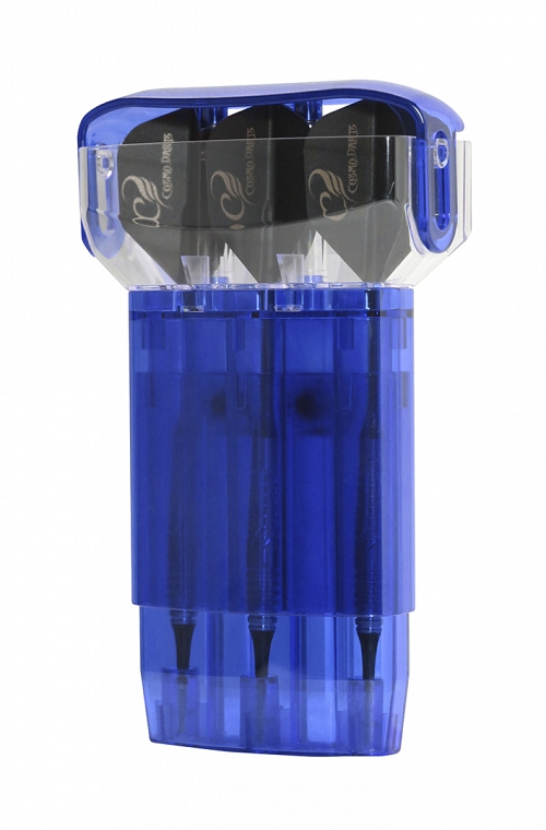 Fit Case X em cor azul. Estojo com design elegante e prático, com capa de plástico para garantir total proteção dos dardos. Você pode salvar dardos montados com qualquer tipo de voador.