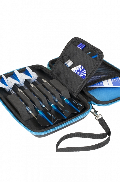 Caso Harrows Blaze Pro 6. Cor aqua. Capacidade para 6 dardos montados, 8 compartimentos de armazenamento e 1 red acessórias. Harrows Blaze Pro 6 é fabricado com um material rígido para garantir a proteção.