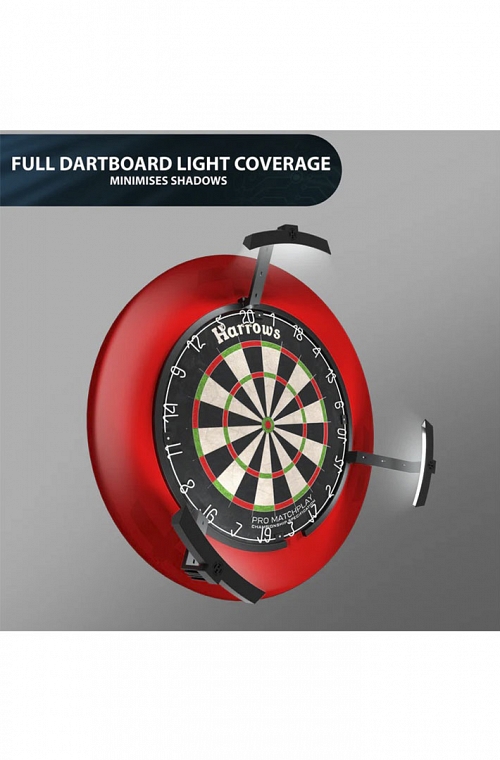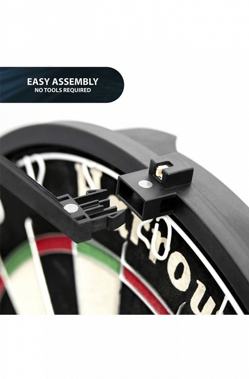 Um novo sistema de iluminação exclusivo, projetado para oferecer aos jogadores a máxima iluminação do alvo de dardos com o mínimo de obstrução. O Trilight possui três luzes LED ultra brilhantes que se conectam facilmente à estrutura principal para formar uma peça. As luzes são simplesmente fixadas na parte externa do alvo de dardos e mantidas firmemente no lugar usando ímãs fortes e integrados.