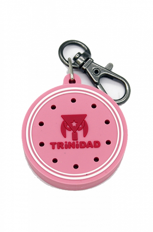 Chave para transportar ponteiras com desenho elegante com uma forma de alvo. Cor rosa. Inclui mosquetão para pendurar no cinto ou no caso. Capacidade para 10 ponteiras.