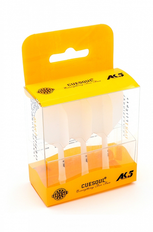 Voadores Cuesoul AK5. Conjunto de voadores shape e hastes tamanho S de 21 mm em cor branco. Voadores Cuesoul de grande resistência.