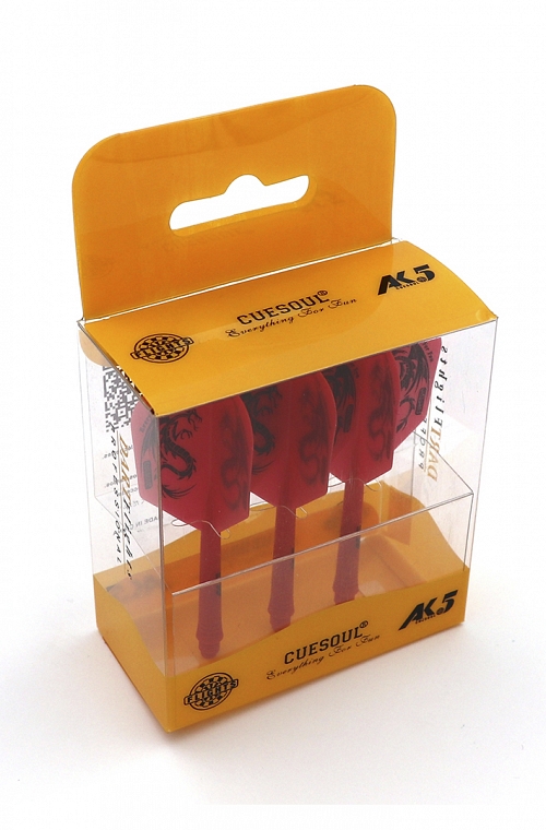Voadores Cuesoul AK5. Conjunto de voadores shape e hastes tamanho L de 33 mm com desenho dragon vermelho. Voadores Cuesoul de grande resistência.