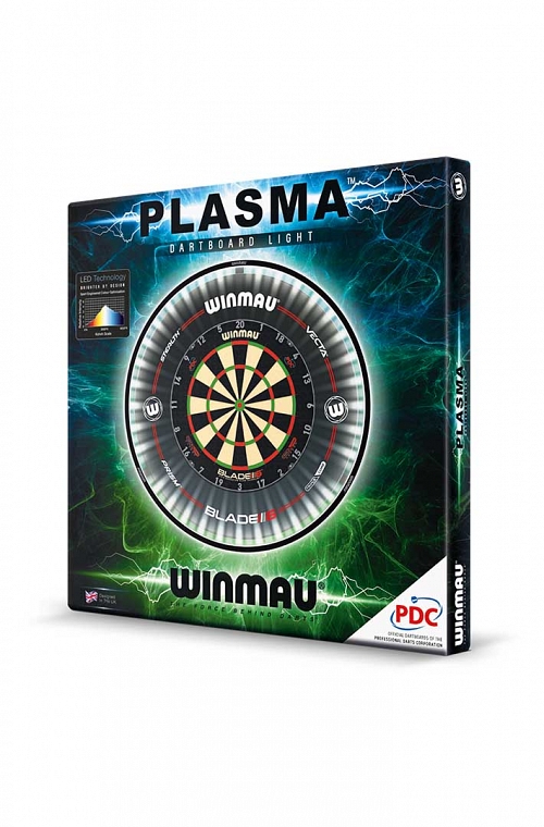 Winmau Plasma 360 Dartboard Light. Nível profissional, luz para alvo de dardos 360. Design robusto em alumínio que se fixa com segurança à parede com uma área de jogo desobstruída. Entrega dinâmica de LED com zero sombras e sem brilho lateral.